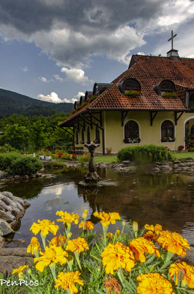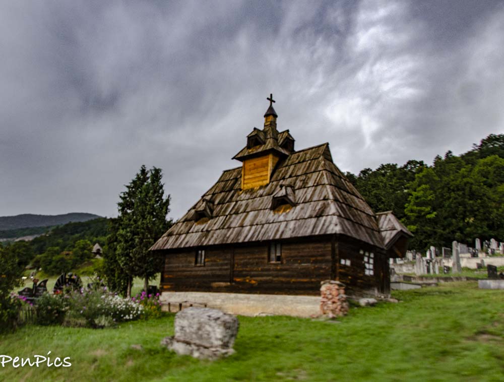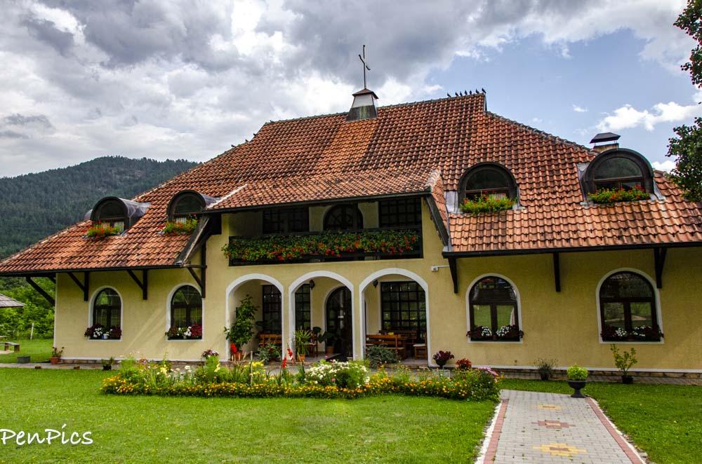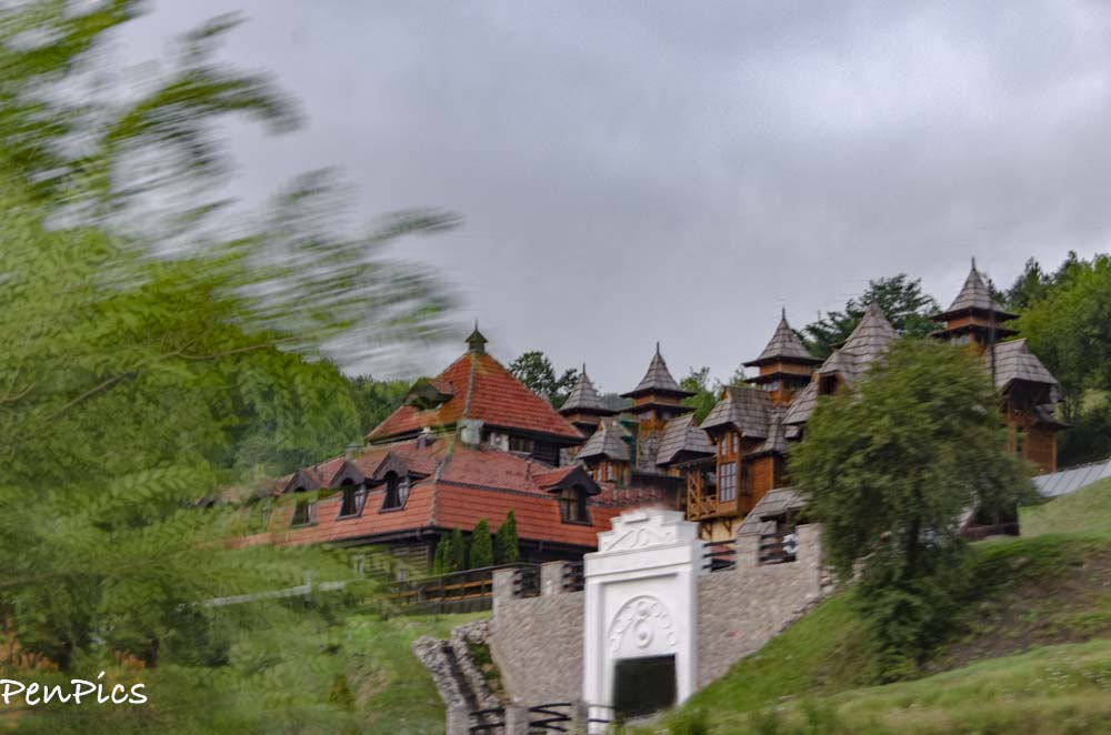 When we arrived at our destination of Mokra Gora, in about four and a half hours, with only one wrong turn, we were surprised to see a very different look, then we had seen, yet, in Serbia. What a darling Village! There are a lot of wooden homes, churches and cabins. The architecture is unique and old-world. We feel a German ambiance, here.