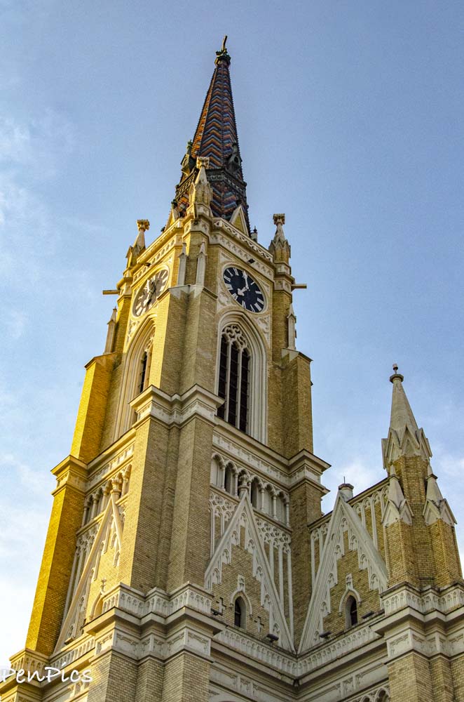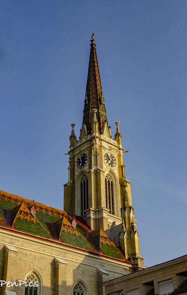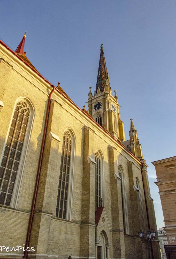 After a fire in 1904, the church was renewed; the roof was decorated with hexagonal enamelled plates. The bust of the Georg Molnar is placed in the alcove under the choir. The latest renewal emphasizes the yellow brick which the church was made of, and by means of special lighting that illuminates the walls, it makes it the most recognisable building in Novi Sad.