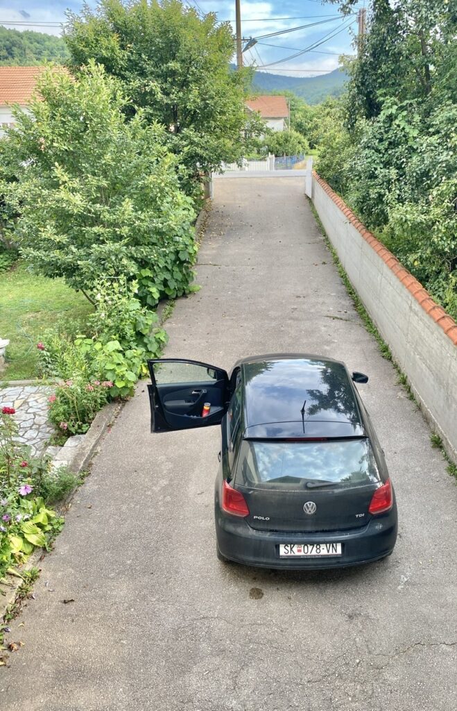 I asked at this restaurant if they knew of any rooms for rent. A very nice man began speaking German to me, which I’m use to, because I get mistaken for a “Fräulein” all the time! 🤣. This man knew zero English, but he seemed to understand what I was saying. He motioned for us to follow him, where I though we might go next door or something. But, he got in his truck and we followed him. He parked and indicated we follow him in the car. This first place must not ha evwithed, so Daryl and this man crossed a footbridge to another place with an apartment in it and made all the arrangements for us in his language. We were in no position to barter, so accepted the 40 Euro (with no A/C or WiFi, but those continue to be first world problems for us). We actually had driven by this property a couple of times, but it’s quite clear ya need to know somebody to rent rooms from, when not advertised by road signs.