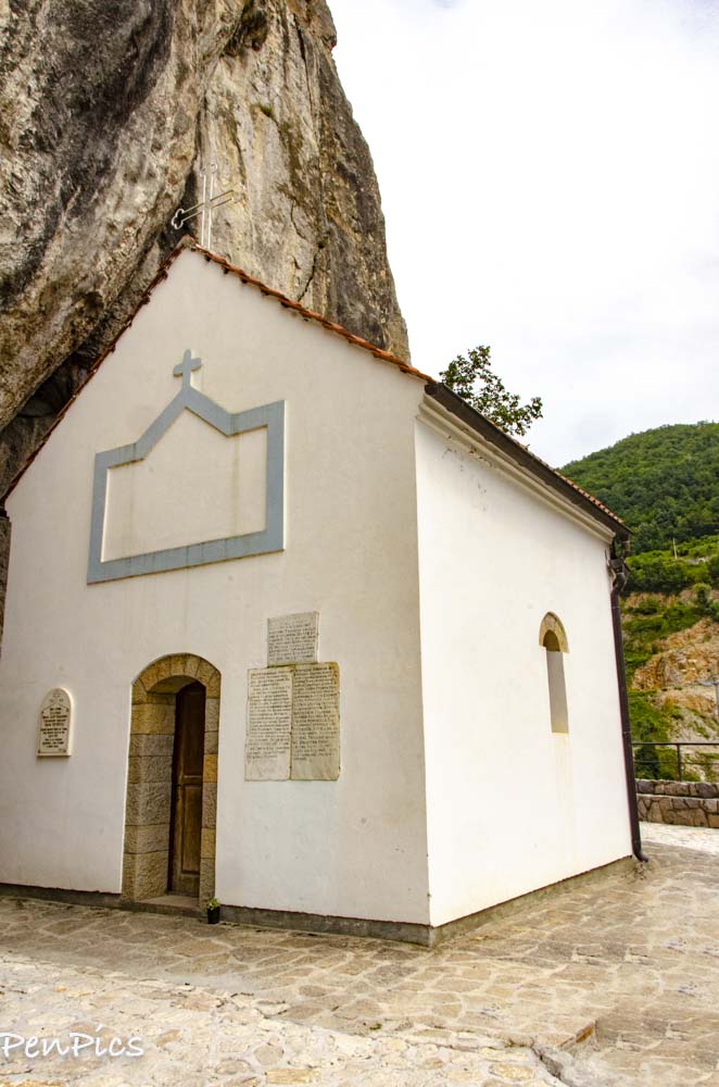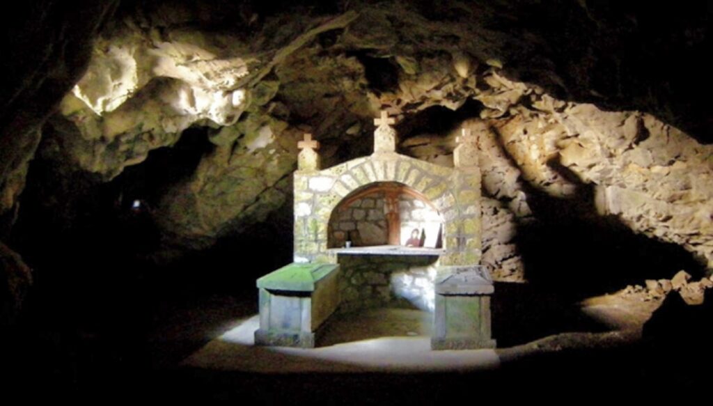 Quite strange is the fact that the remains of the victims were left untouched for more than 120 years. In 1936 Bishop Nikolaj Velimirovic encouraged the locals to visit the cave and bury the remains. The remains were finally retrieved, fully cremated and buried in two stone sarcophaguses. The cave was turned into a church by installing an altar. The local authorities cleared the path to the cave and set up a 50m high cross at the entrance. It marks the place and make it recognizable from far away.