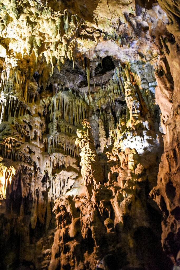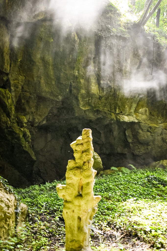 After a good nights sleep, rain serenading us with a rhythmic beat on a hot tin roof, we set off for the caves nearby. The roads are still wet and the clouds are menacing, dark and turbulent. As we drive through tree tunnels, with limbs that completely cover the road, the sun penetrates the canopy. A little stream follows the road. As we approach the caverns, the traffic picked up, a different pattern from our normal drive. The road seems extra narrow. The farms pass us by with open fields used for hay and corn; lots of corn.