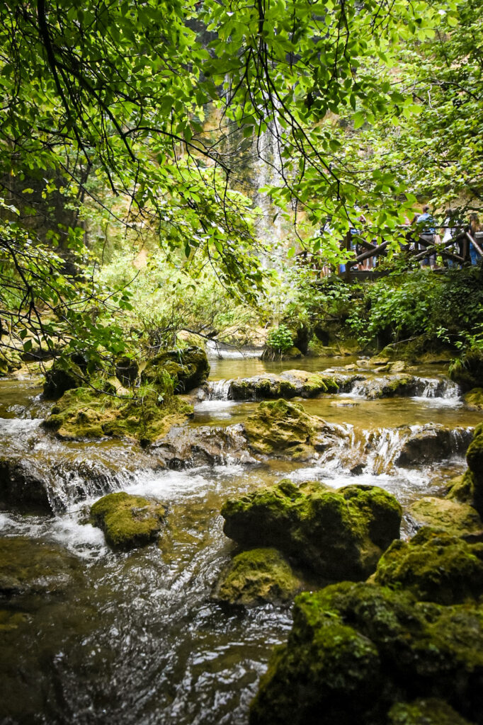 A waterfall is next on our list and another carnival atmosphere develops. It was a wonderful walk to the waterfall, over wooden bridges and a damp trail. It was a short pleasant hike, pictures captured, with selfies standing by the waterfall and the rapids that followed the canyon. Another bridge lead us to a few restaurants, created out of an old grain mill. Stands were set up with wares for sale, and everyone is selling honey. Some had wooden items or hand knit little shoes for babies. We passed another lady with sacks of four different flours and meal. If we were flying home, I would have purchased each stone-milled product and enticed Bunny to make some bread with it.
