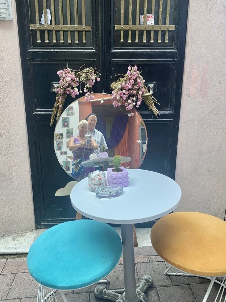 Moving on, we enjoyed our wanderings from Balat to the Fatih districts, until the rain got so bad, we had to admit it was time for a taxi. The nice taxi driver, spoke a little English. I gathered he thought I needed an umbrella. I smiled and said we were was doing fine. When he stopped to drop us at our hotel, he asked us to wait in the car. He got out in the pouring rain, went to his trunk, got an umbrella and came to my side and opened the door with the umbrella, ☔️ ready. He then handed me the umbrella and said he wanted me to keep it! This is what I mean about the lovely people of Istanbul. 🥰