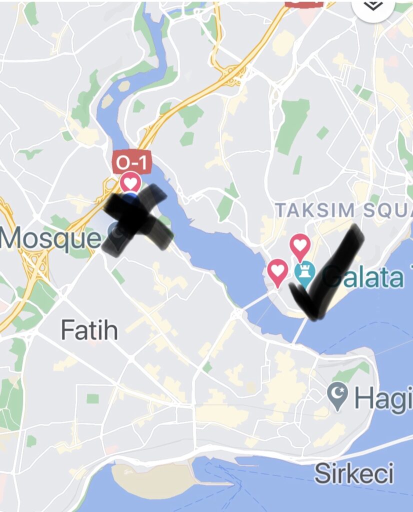 The ❌ marks the area we are in, now, and the ✅ indicates where we have stayed before; two times.