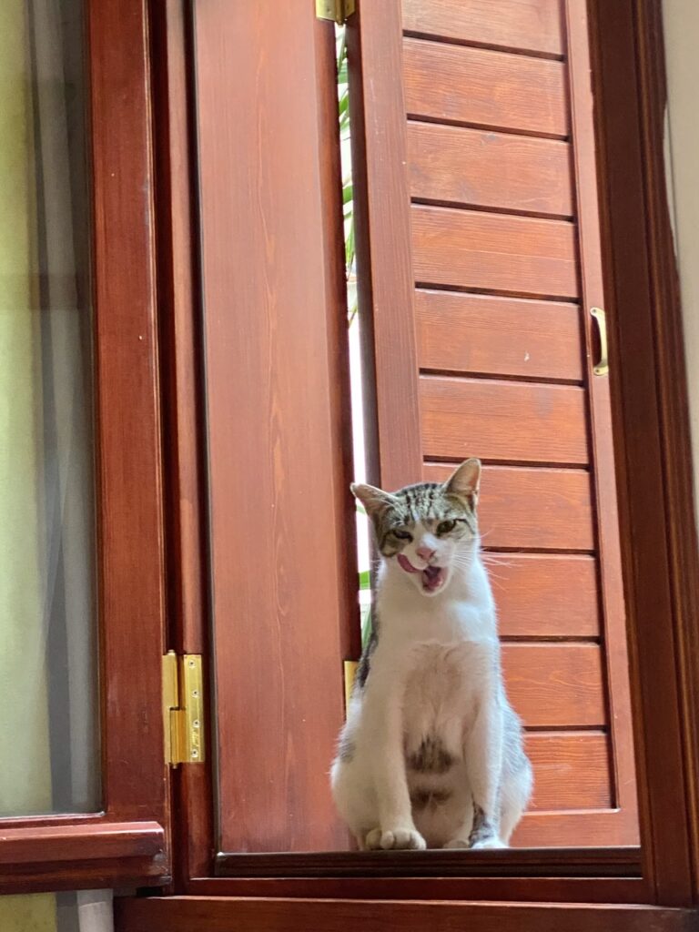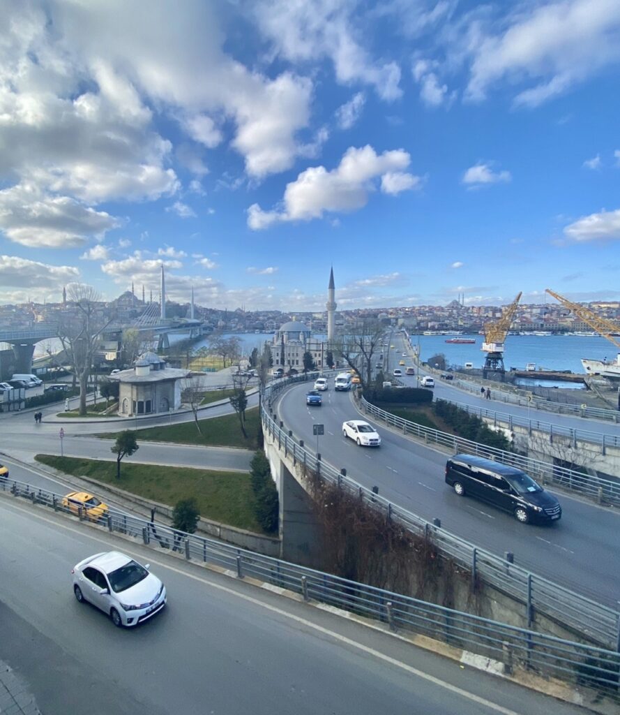 Anyway, we got our running around done, then returned our rental car to the airport. We knew from our first visit here, we could take a bus from the airport for about $10. It is suppose to be about a 20-minute drive by car to and from the airport, but unless its the middle of the morning, this is not usually the case. We had brought lunch to eat on the bus, but no eating on the bus was allowed. 🤣🤣. The bus only has designated stops, from the airport to the city, but we got off at a destination as close to the “Golden Horn” part of the water, as we could. From there, we got a taxi for the final 15 minutes. THEN, we ate our lunch. Our chicken must have smelled good, because we soon had a visitor at our window, who was more than happy to help us eat it!