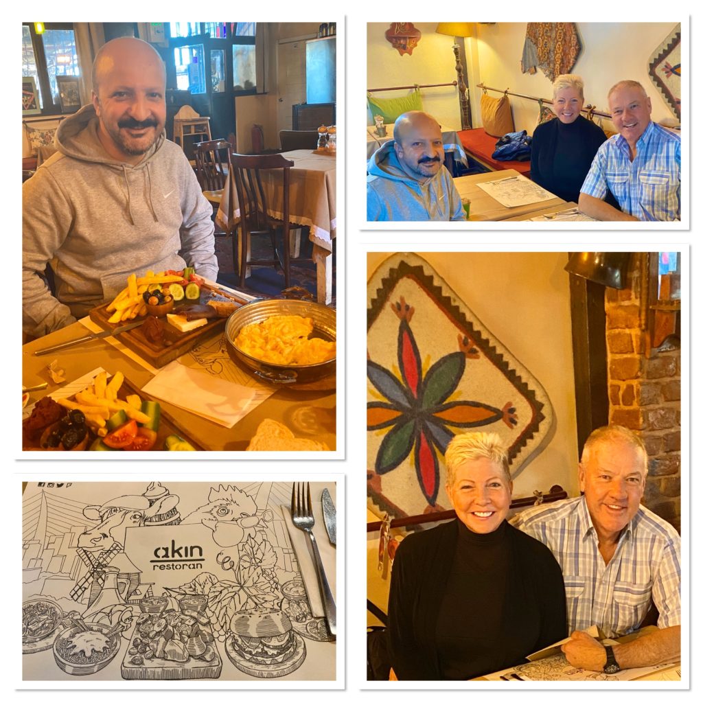But first, our friend (and landlord) took us out for a traditional Turkish Breakfast at a cozy restaurant; called “Akin Restoran.” It is right around the corner from our flat. It was delicious! We sat next to the wood-burning-stove and enjoyed the ambiance of the 700-year-old building; which at one time was connected to a Turkish Bath.