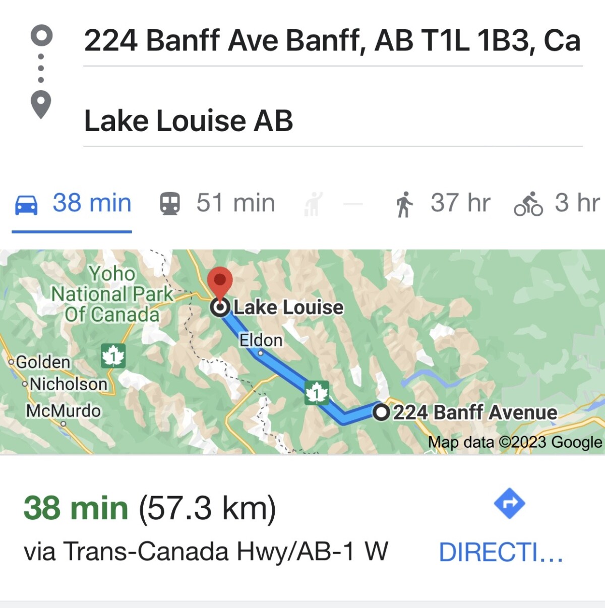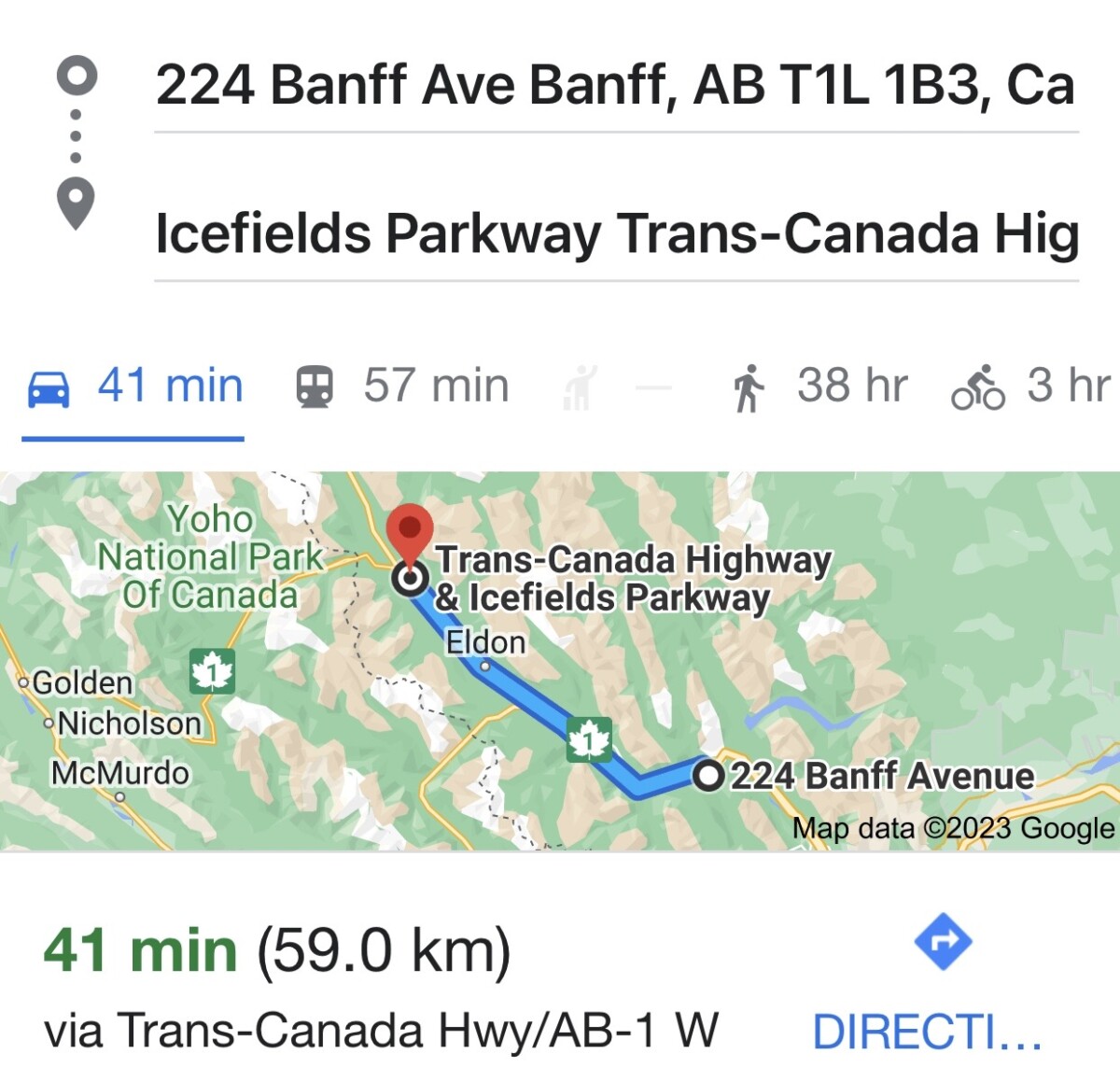 It took us about 1.5 hours on the Trans-Canadian Highway, to get to the park entrance at: