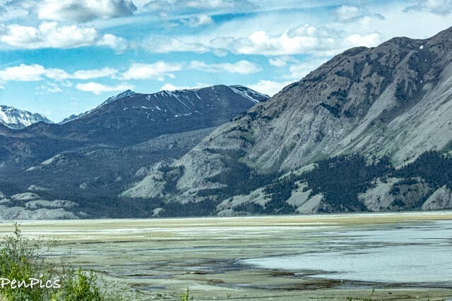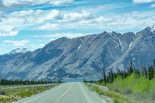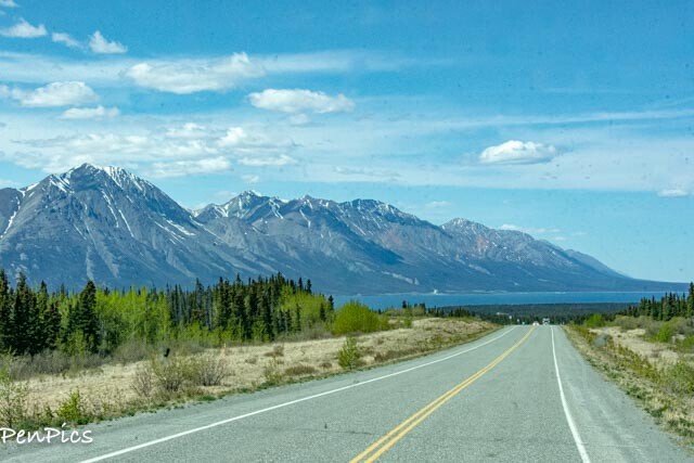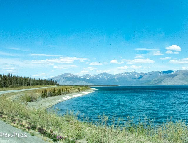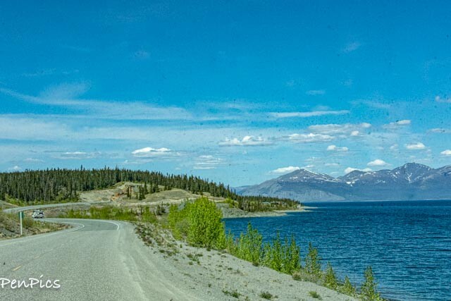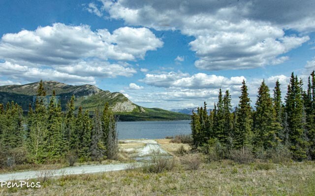 We drove around the beautiful Kulane Lake and btw, also some great pullouts for boondocking along there, too, if the timing is right for those who may take this trip. We got a later start from Whitehorse and wanted to continue, in our case. The sun was out, and we had dry pavement. It was such a beautiful drive.