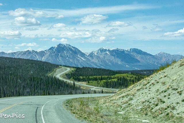 A few hours into the drive, from Whitehorse, Yukon, we drove out of the bad weather, and in through the scenic and beautiful mountains of Kluane National Park. Wow!