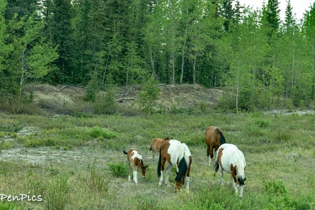 The real excitement was finally getting to see a small herd of the Wild Horses! Now those horses must be super tough, to survive in the wilderness with Grizzlies and Wolves! Looks like a third mare, is ready to pop, any day.