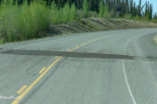 Also, the road patching work ended, as I suspected it would, at the USA border, until about an hour, further North. It was the absolute worst part. The asphalt patchwork eventually resumed, but don’t get a false sense of normalcy. There are bad spots, still, all the way to Tok.