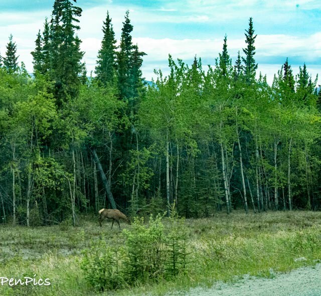 The wildlife was not a plenty, today, but we finally saw one Elk on the AlCan, for all the signs we have seen, warning about them possibly being on the road.