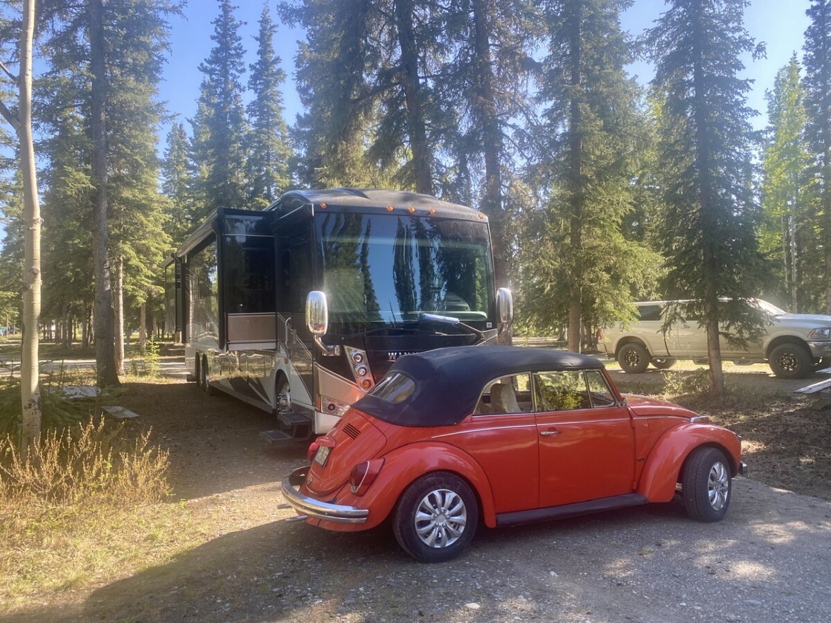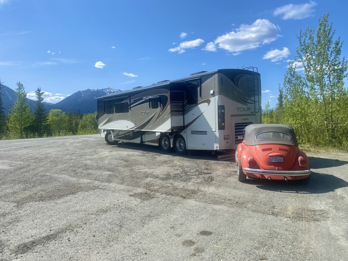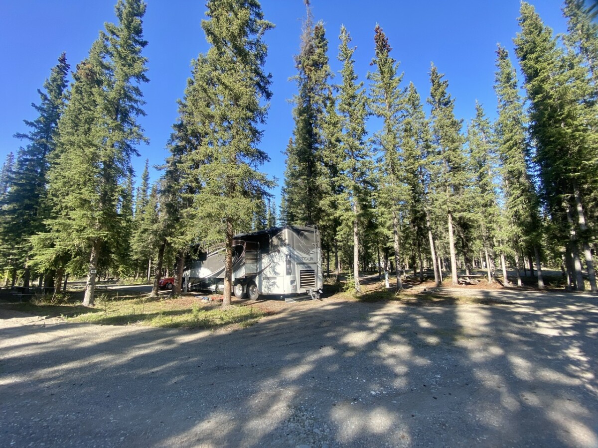 In a perfect world, the drive from Destruction Bay to Tok in an RV’s, would take about 4.5 to 5 hours. With the difficult road, and construction with pilots cars, it was a seven hour day; including, a 15 minute Power Nap for Daryl, and a 10-minute stop to wash Jonah, and fueling up in Tok.