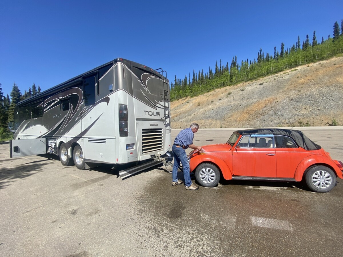 We never unhooked Jonah. We towed her through this part of the AlCan, too. Had there not been the repairs, I would have driven her separately.