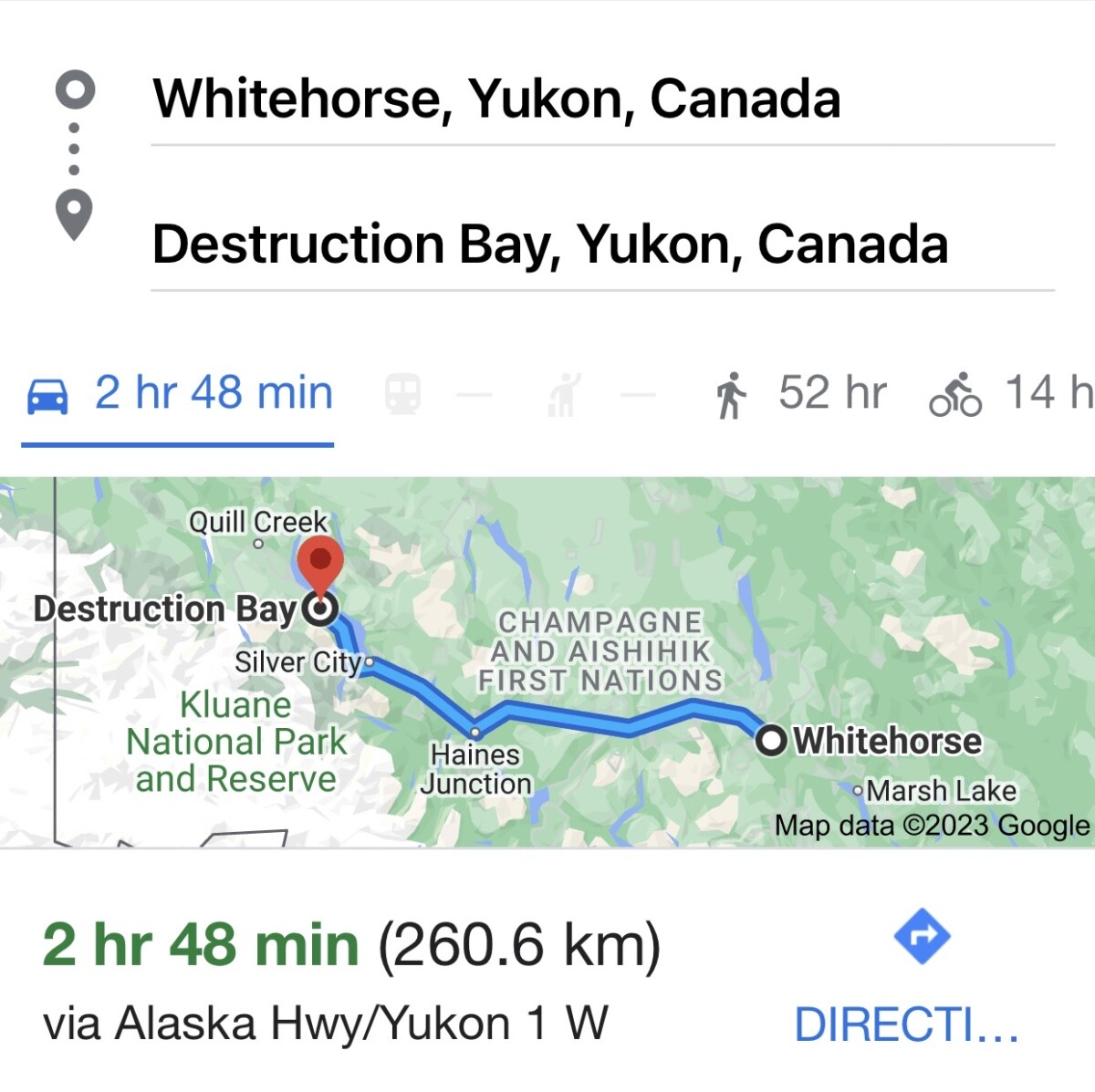 Whitehorse, Yukon To Destruction Bay, Yukon