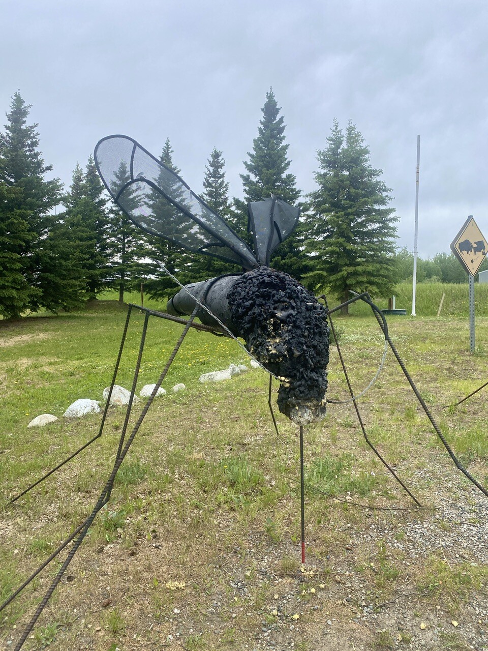 Major swarm of mosquitoes met us when we opened the door at this rest stop, and we’re instantly reminded, June is the month for them in Alaska.