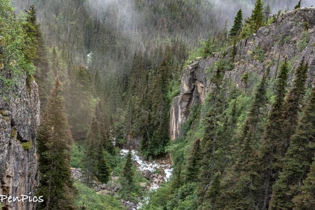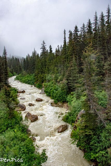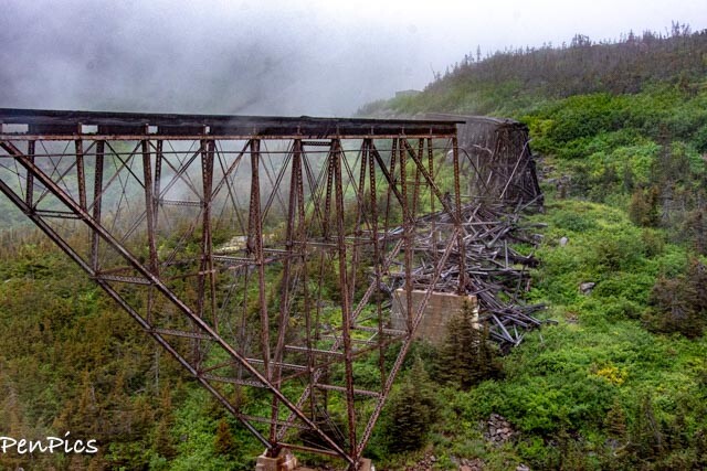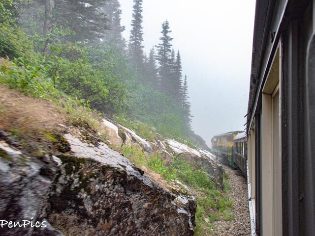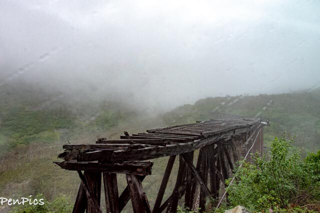 Regardless, the train ride and the narrated history was fabulous. We did not get to see all the lovely views, with the low lying clouds and fog (our primary summer pattern, unfortunately for EVERY Excursion we paid gobs of extra money for) but we saw many historic landmarks along the way, and because some of the history of this area of White Pass is very sad, the photos with their ominous vibe, was very haunting and fitting, in a lot of ways.