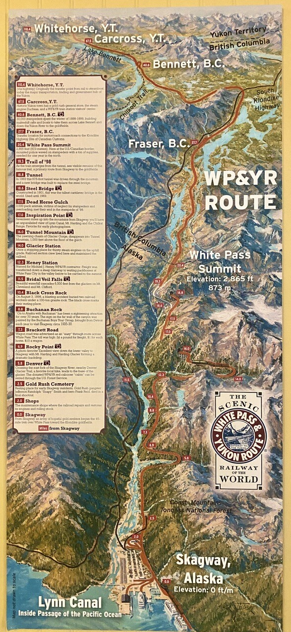 ⬇️ You can expand this map. It’s very comprehensive and well done for the route we took. For this train ride, we did not have to show passports, as we crossed in to Canada and back into Alaska, because the North West Mounted Police Station is unnamed at this time. Besides, we were not allowed to get off the train, till the trip was complete.