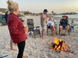 We joined a few campers for a beach bonfire. I traveled throughout the town to find firewood with no luck. Buying firewood before traveling to Mexico is a must. The day before, I saw a truck with firewood for sale. Like the girl with home grown eggs, if you don’t get them when you see it, you may go without.