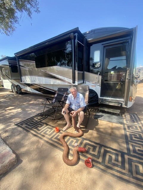 We have never been around so many Canadians. Our Winnebago 42QS is so big we could not park next to the concrete pad, because the sewer input was a volcano shaped concrete mound, about one foot tall. Our wheels would set on top and we would never level our coach. So, we moved next to the other concrete pad and ran our sewer hose under the coach to connect. After opening the slides, we took out half of the adjoining pad. Two Canadians gave their opinions as to how I was not parking right. We had no choice and the campground was going to be emptying out in a few days, since peak winter season was over. It’s best to let the RV office make decisions on our behalf, instead of other campers. The RV manager had no issue with our coordination at our site.