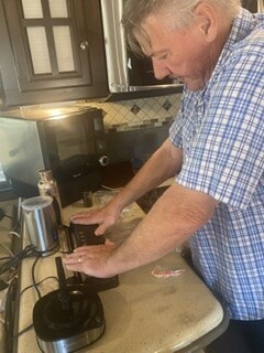 I sure love “Glamping!” I can fix up any of our favorite foods in my kitchen, now! I’m even using our convection oven, which is also our microwave; though completely new to me, over a standard oven, I’m getting used to it.