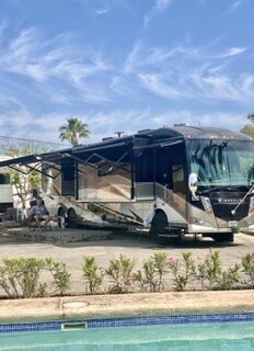 All in all, the A/C at the front seat panel, (The Whale) we could not get fixed, though we tried (they do not have the right equipment for that one to clear the contaminated line) Also, the Aqua Hot system has a leak, but the part needed is not available here in Mexico, so D ordered the part and we have an appointment in Phoenix next week to install the new circulation pump for the antifreeze. ($650 later)
