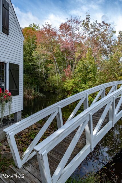 Crossing the mill stream between the Somesville Selectmen’s Building and the Museum is the Thaddeus Shepley Somes Memorial Bridge, built in 1981 to honor a descendant of Abraham Somes.
