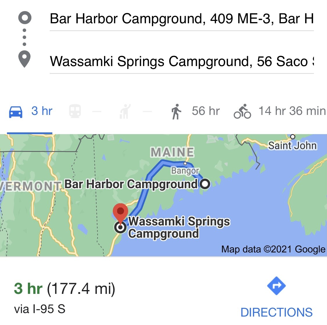 We drove a couple of hours South to Wassamki Springs Campground in Scarborough (near Portland) ⬇️