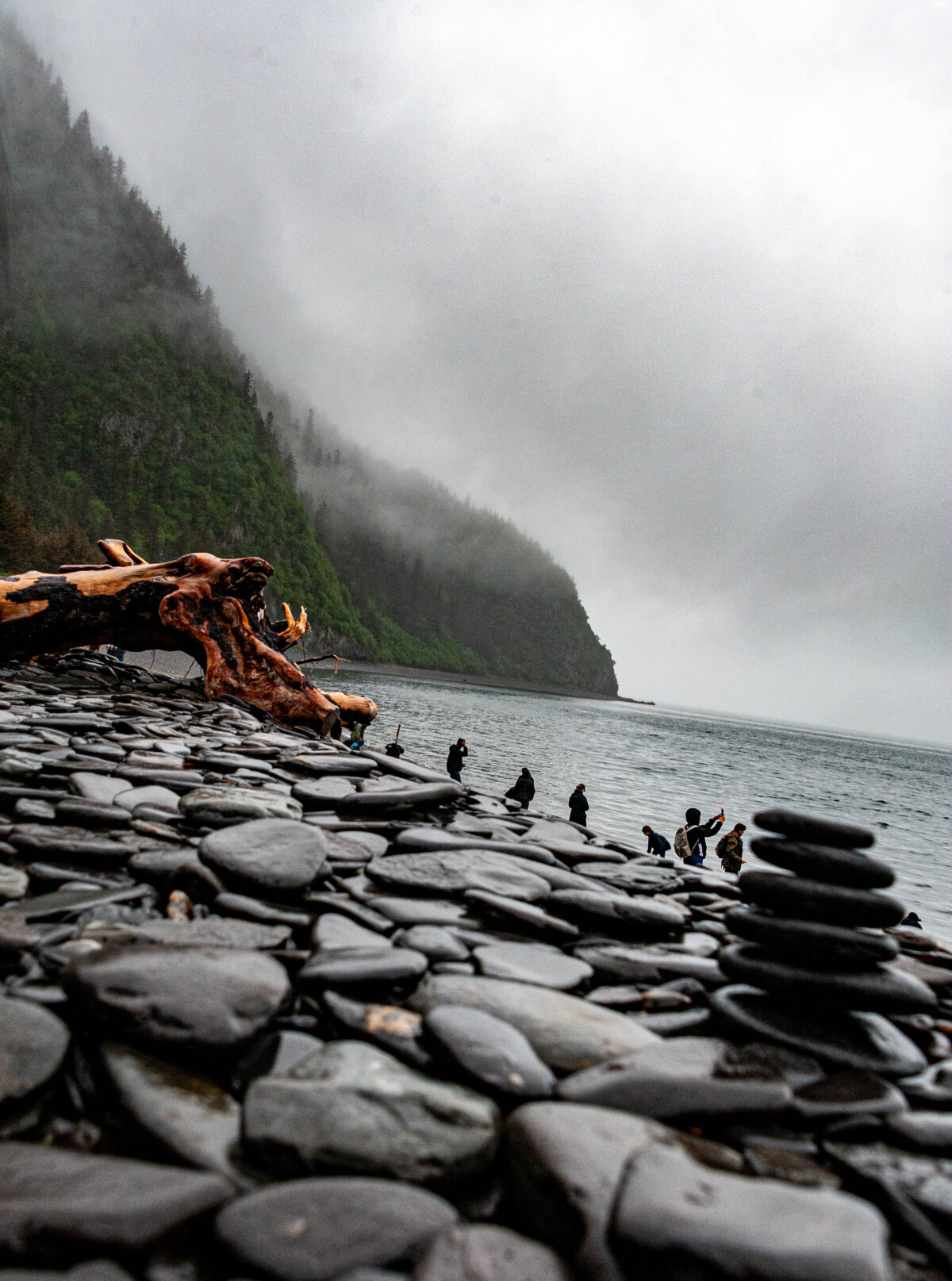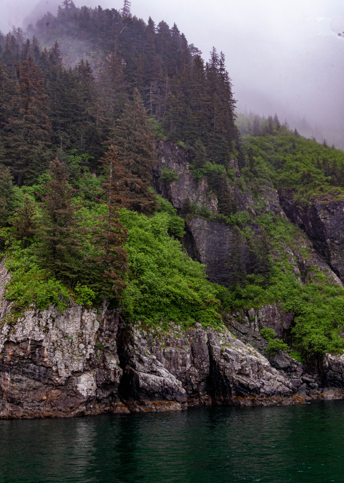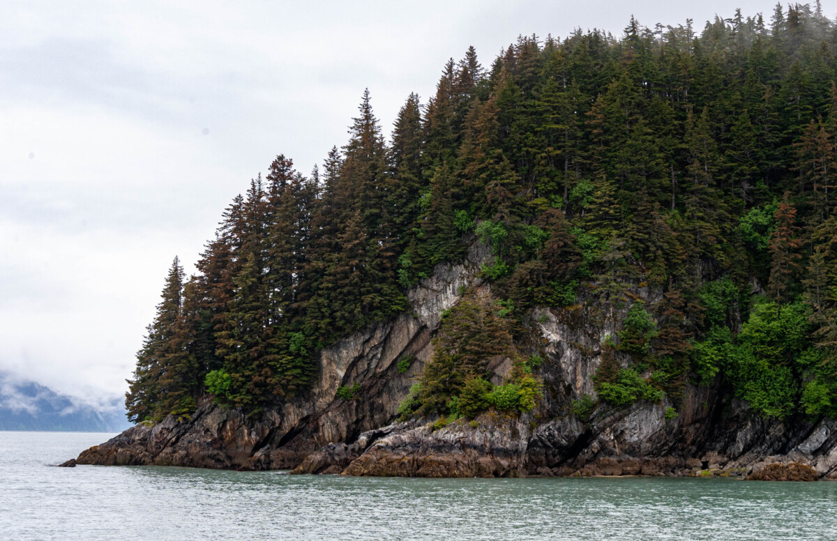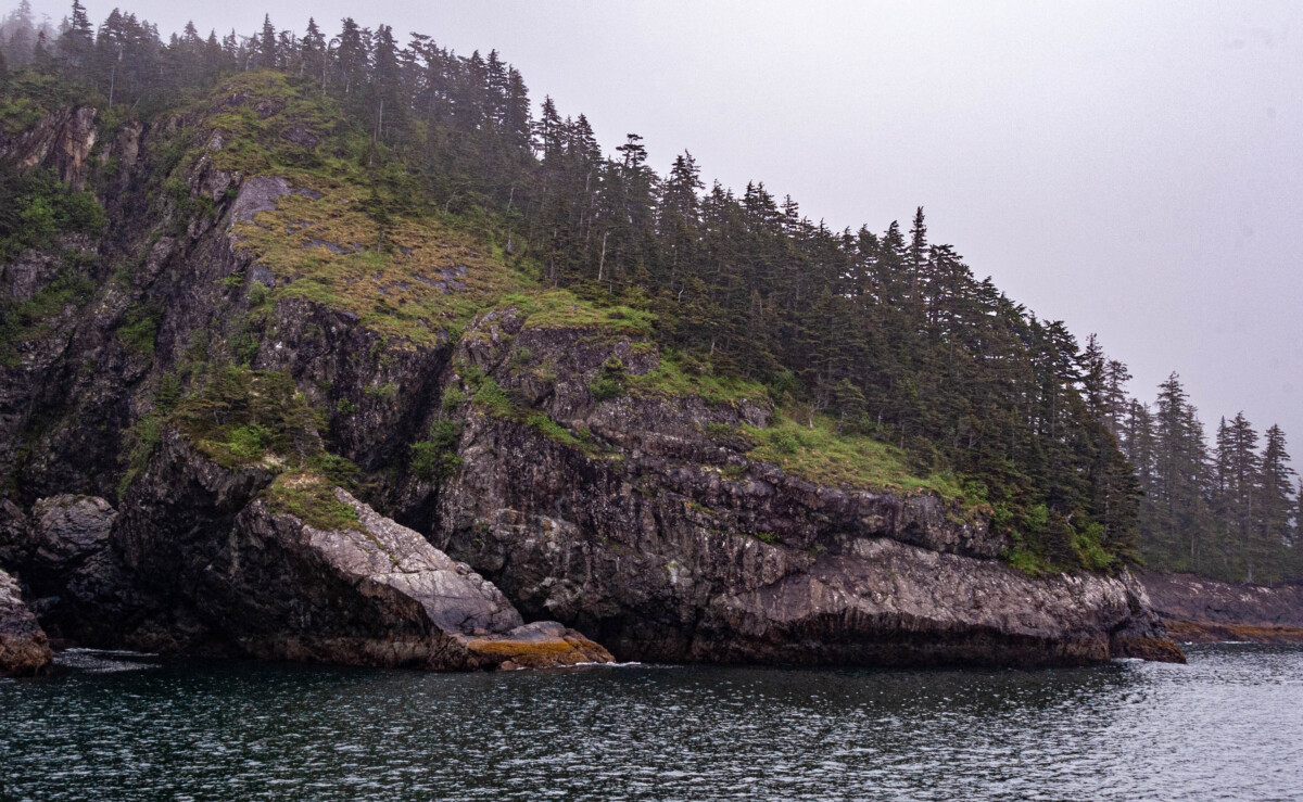 With seabirds floating overhead, the coastline was studded with views of spruce and black spruce trees, as we passed by.