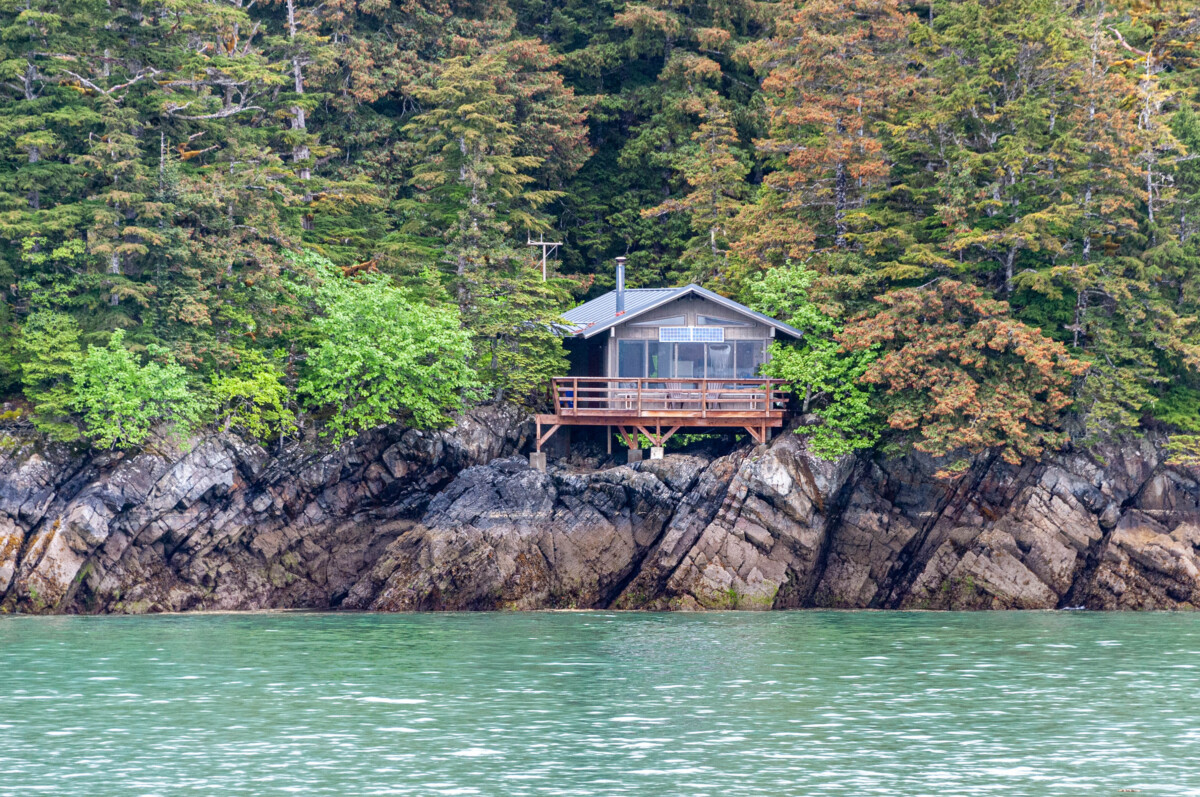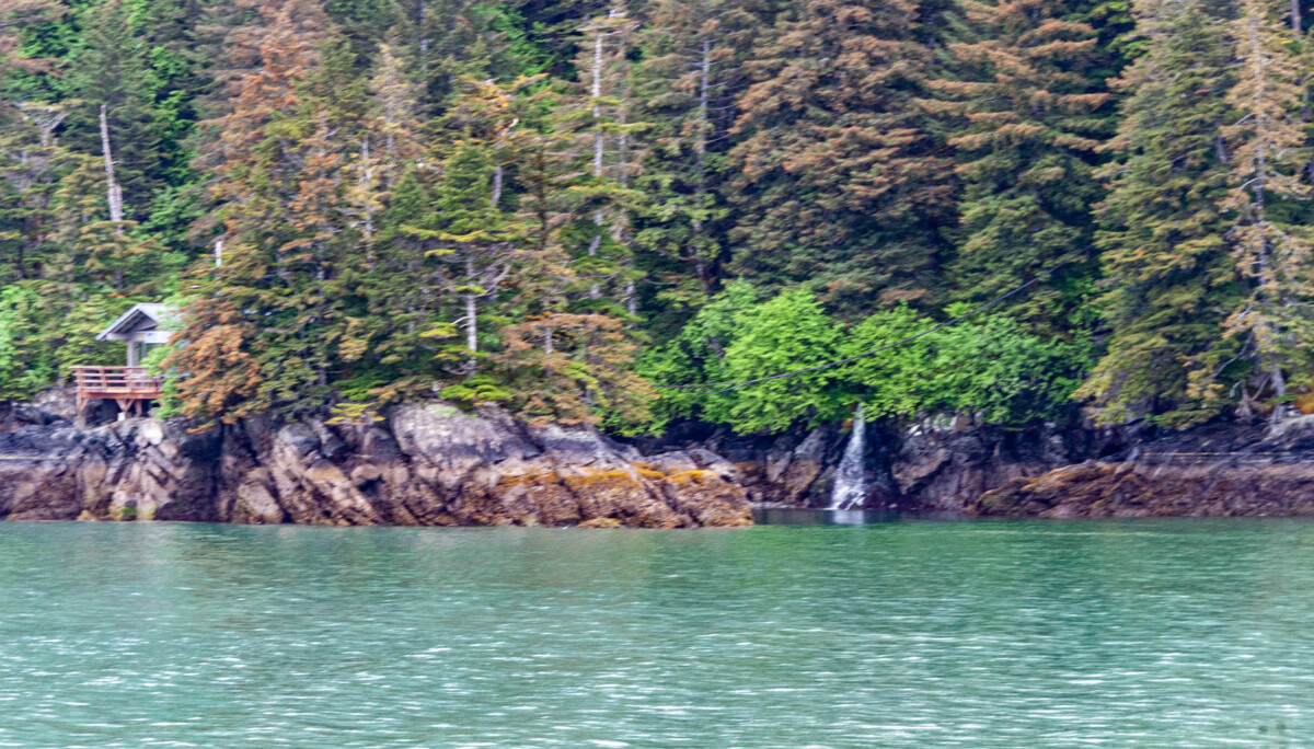 We pass a lone refuge of solace. A small cabin with a private beach and waterfall. Visions of a life of quiet fill my senses, as in a fiction writer’s dream place.
