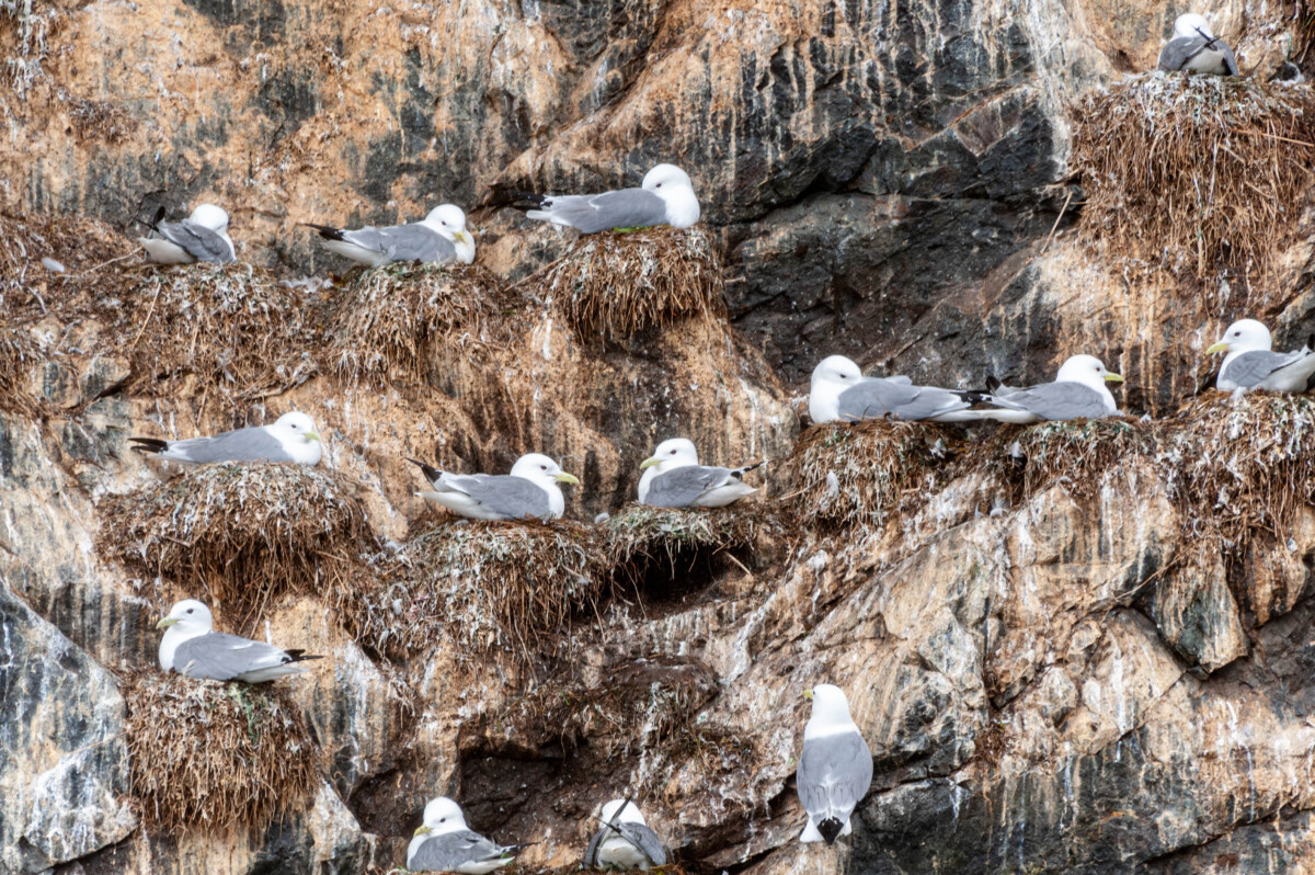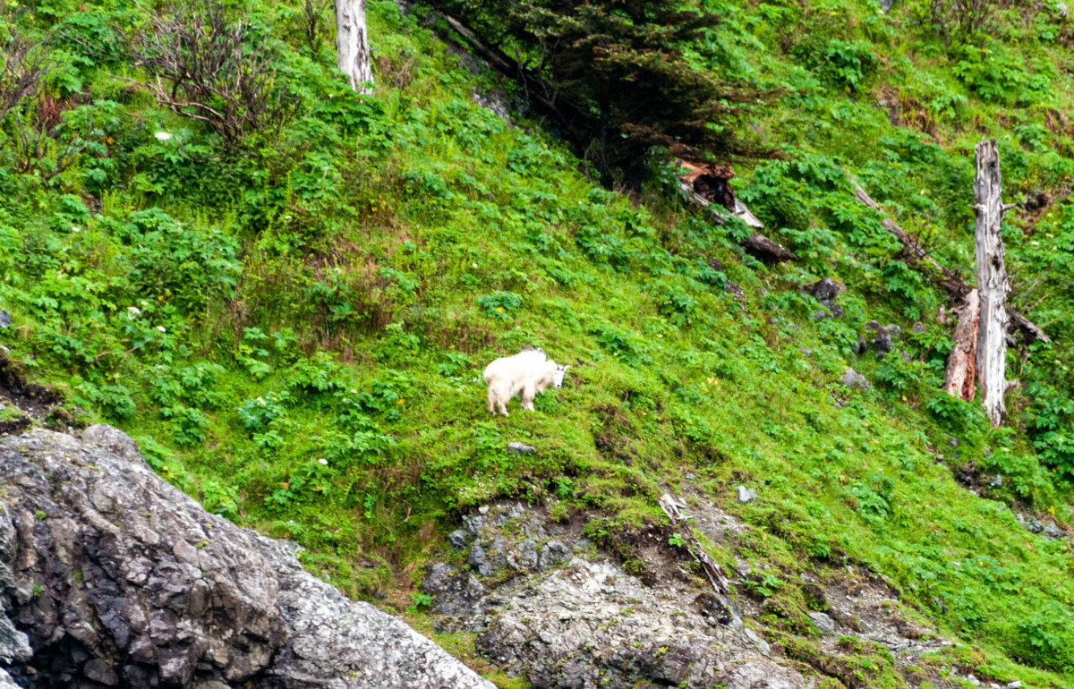 Aialik Peninsula and Chevel Island were loaded with nesting Puffin, Murre, Cormorant and other birds, by the thousands. We also saw a lone Coastal Mountain Goat that climbed down the cliff, for some succulent greens.