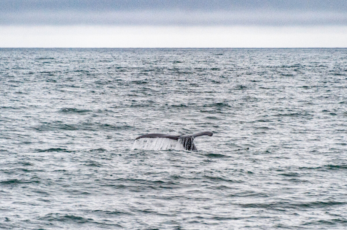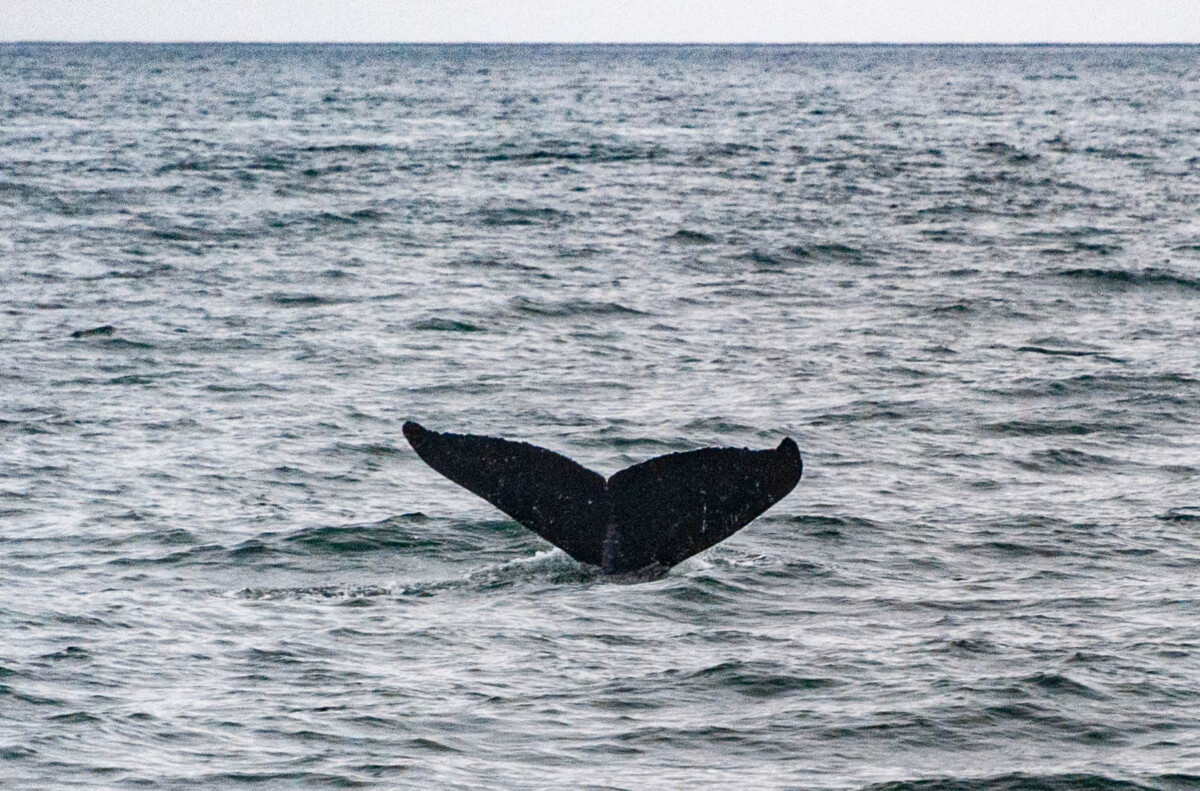 The Captain calls out “Thar She Blows,” as a Humpback Whale spewed hot air out before diving down, showing off its tail slipping into the drink.