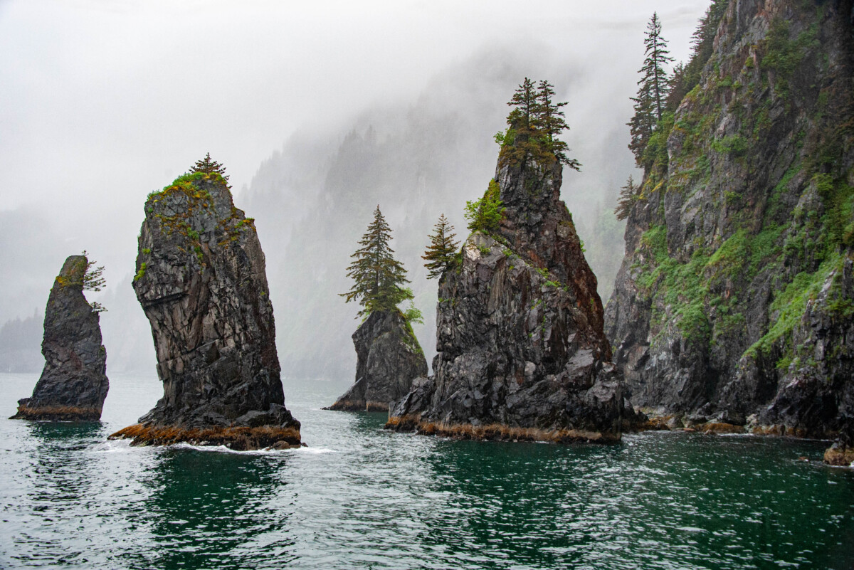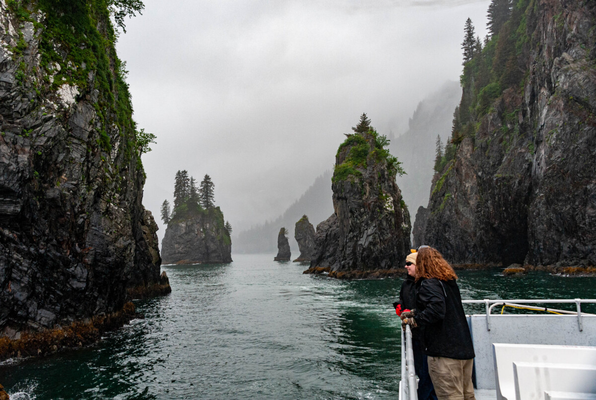 The last stop was Rock Spire in Aailik Bay. Tall pinnacle rocks making up tiny islands, thousands of feet high. Some had spruce trees growing from the top. They were very reminiscent of what we saw in Bi Tu Long Bay in Vietnam.