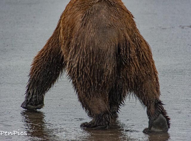 As I was getting a video of one of the Bears in front of me, and turned to move on to the other one, I was surprised it had walked up right behind me; not because it was interested in me, but because it was smelling for clams. It was an arms length away!