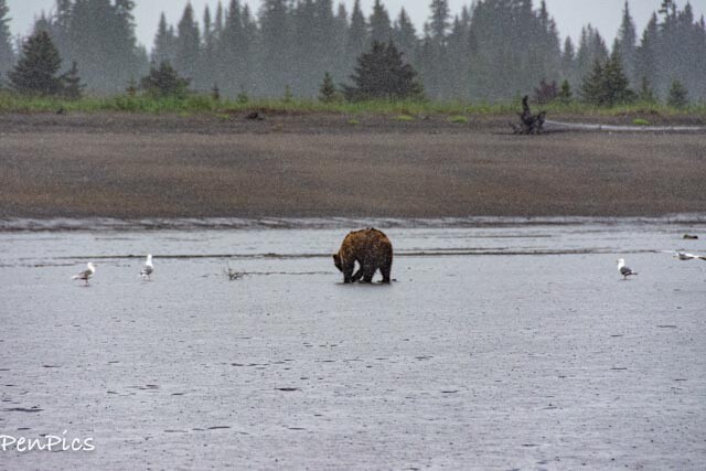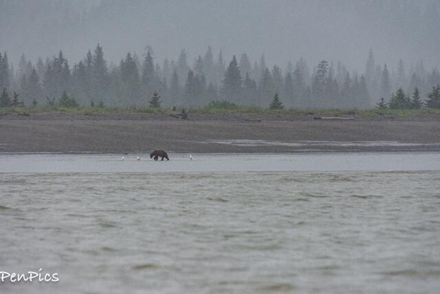 Speaking of the weather, it was quite unfortunate on this day (like every other day for going on three weeks in this peninsula), so the mama Bear and her two cubs that have been on the beach every day, clamming for awhile now, did not make a showing. Had there been wind and rain, we may not have seen any Bears.