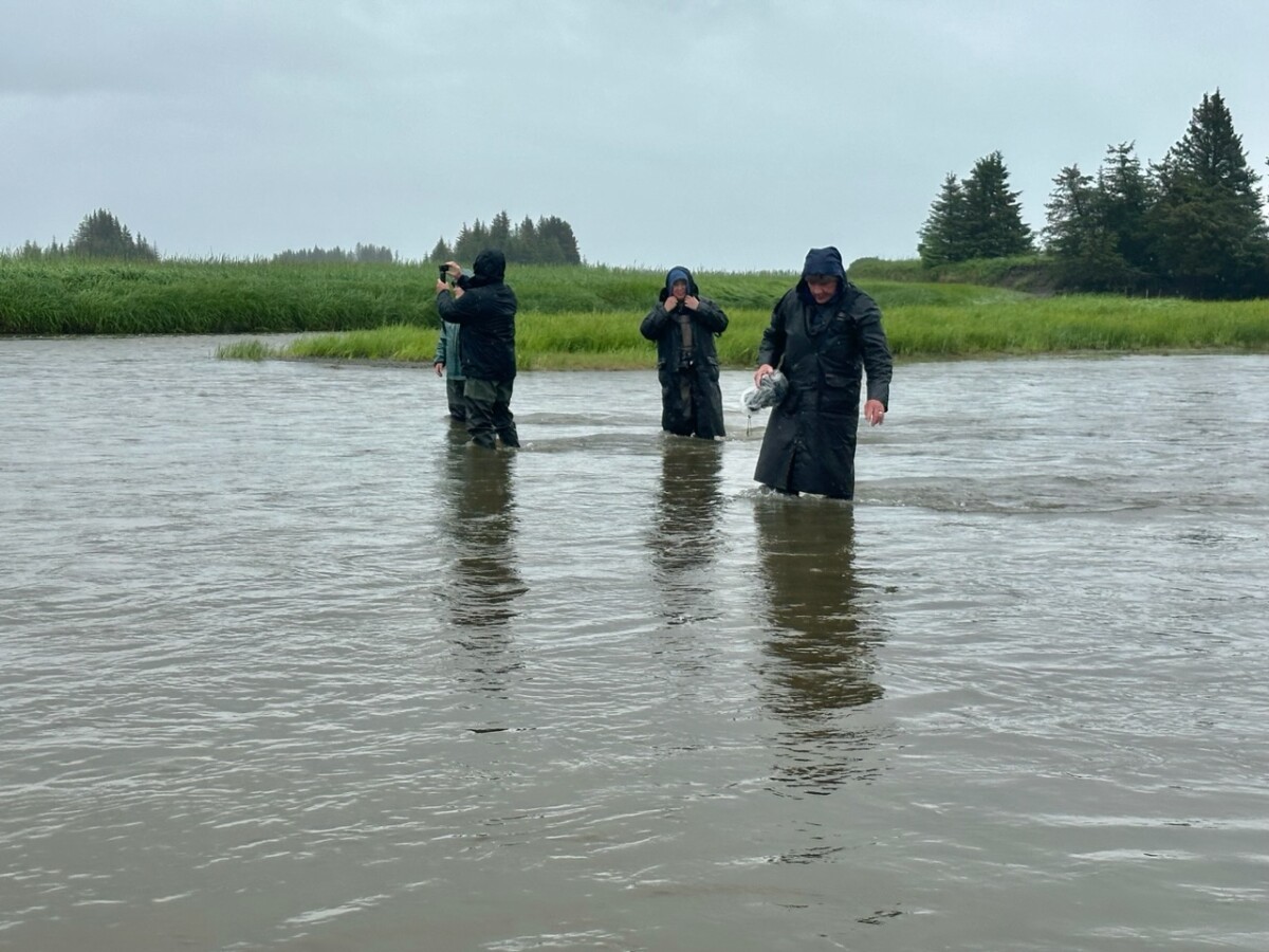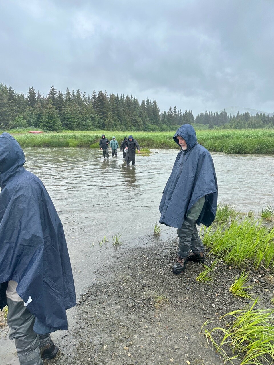 We all left the beach, and walked inland to see if any Bears could be viewed in the meadows. We waded another water source, but no more Bears. It was assumed by our guide that many may have been out on the beach, earlier and already gone, before we arrived.