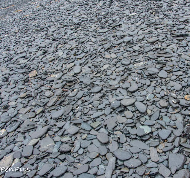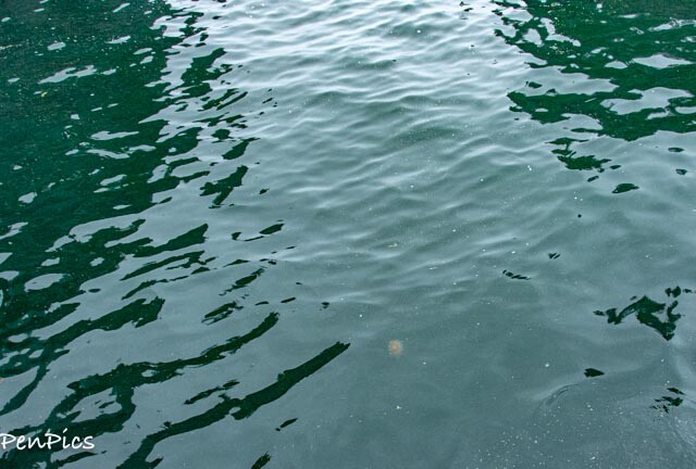 The beach on Fox Island is loaded with flat rocks. Beach combing for a heart-shaped one, and eating lunch on the island took up our one-hour stop, there.
