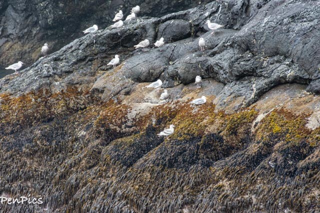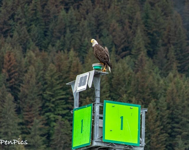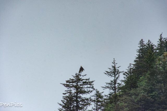 The white head of the American Bald Eagle could be seen quite regularly, along the rocky coastline.