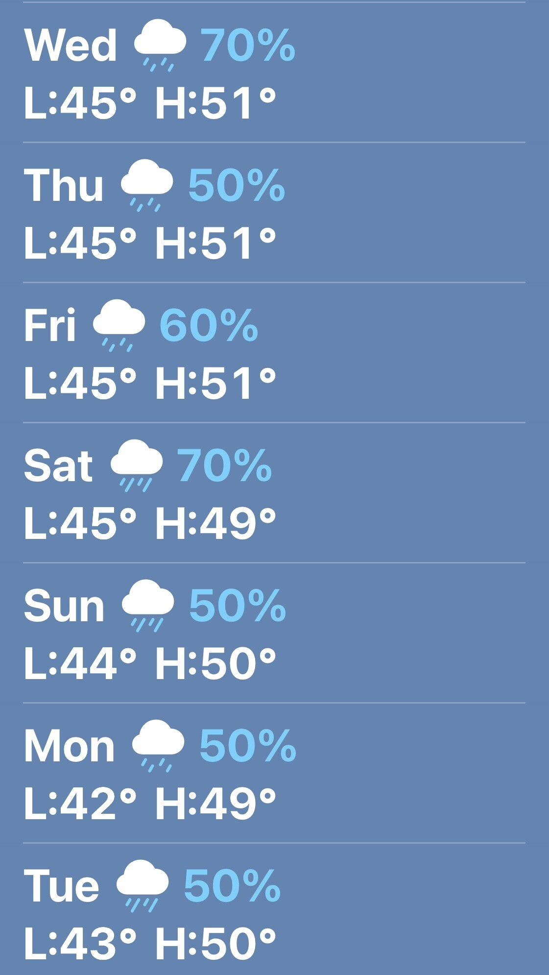 Our weather forecast for our week in Seward. Not so great. 🙃