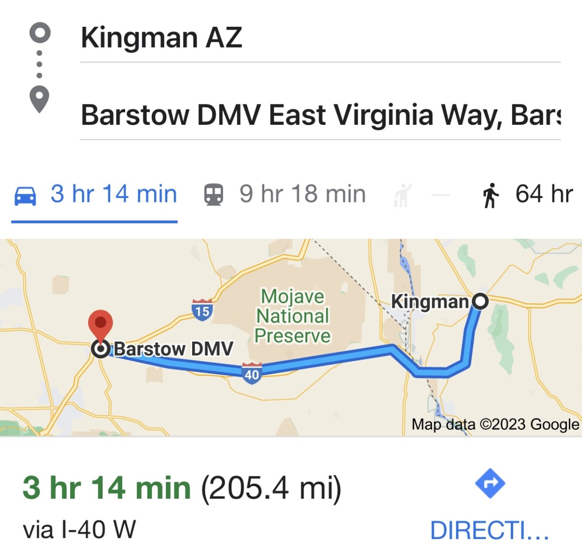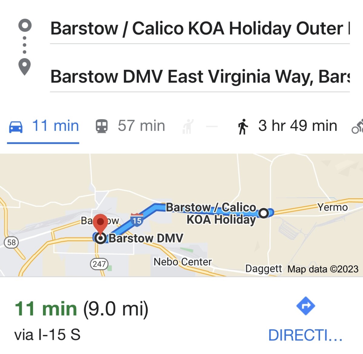 On checkout day from that campground, we drove directly back to the Barstow DMV, only to learn there was no copy of the title.