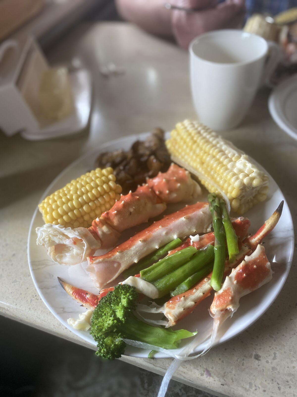 Because of this unexpected gift, he also brought home 1.5 lbs of King Crab (from Russia).