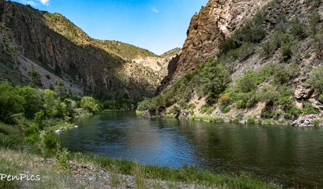 Having completed the scenic drive through Black Canyon, we headed down a steep grade to the Gunnison Tunnel and Diversion Dam. The road ends, so it’s the same way out. Very beautiful!