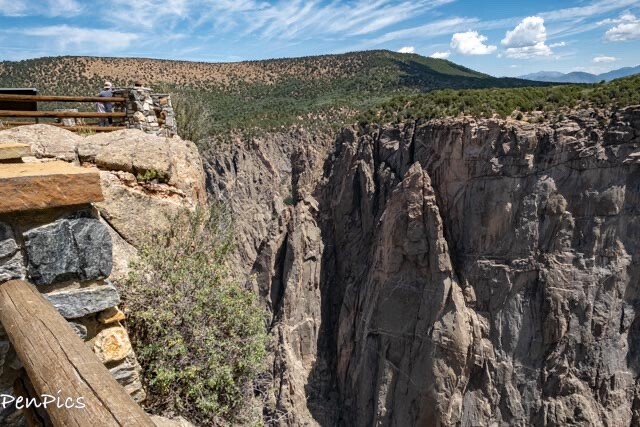Montrose is closest to the South Rim entrance with the North Rim entrances closest to Crawford. There is no bridge connecting to the other side, so a roughly two-hour drive is required to reach the other side of the canyon. (We eventually made this drive, too). This South Rim entrance is the only one that remains open year-round.
