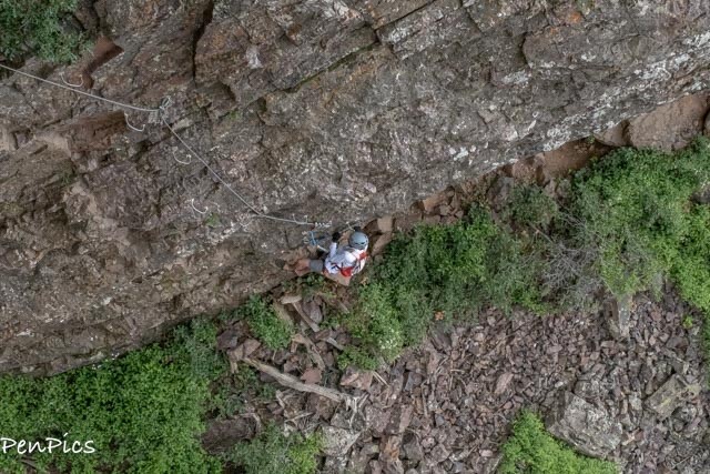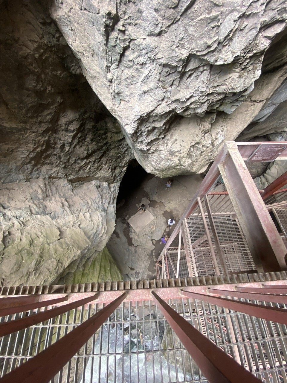 Do watch your head as you wind your way along, when you get close, because part of the cliffs protrudes out above the metal walkway.