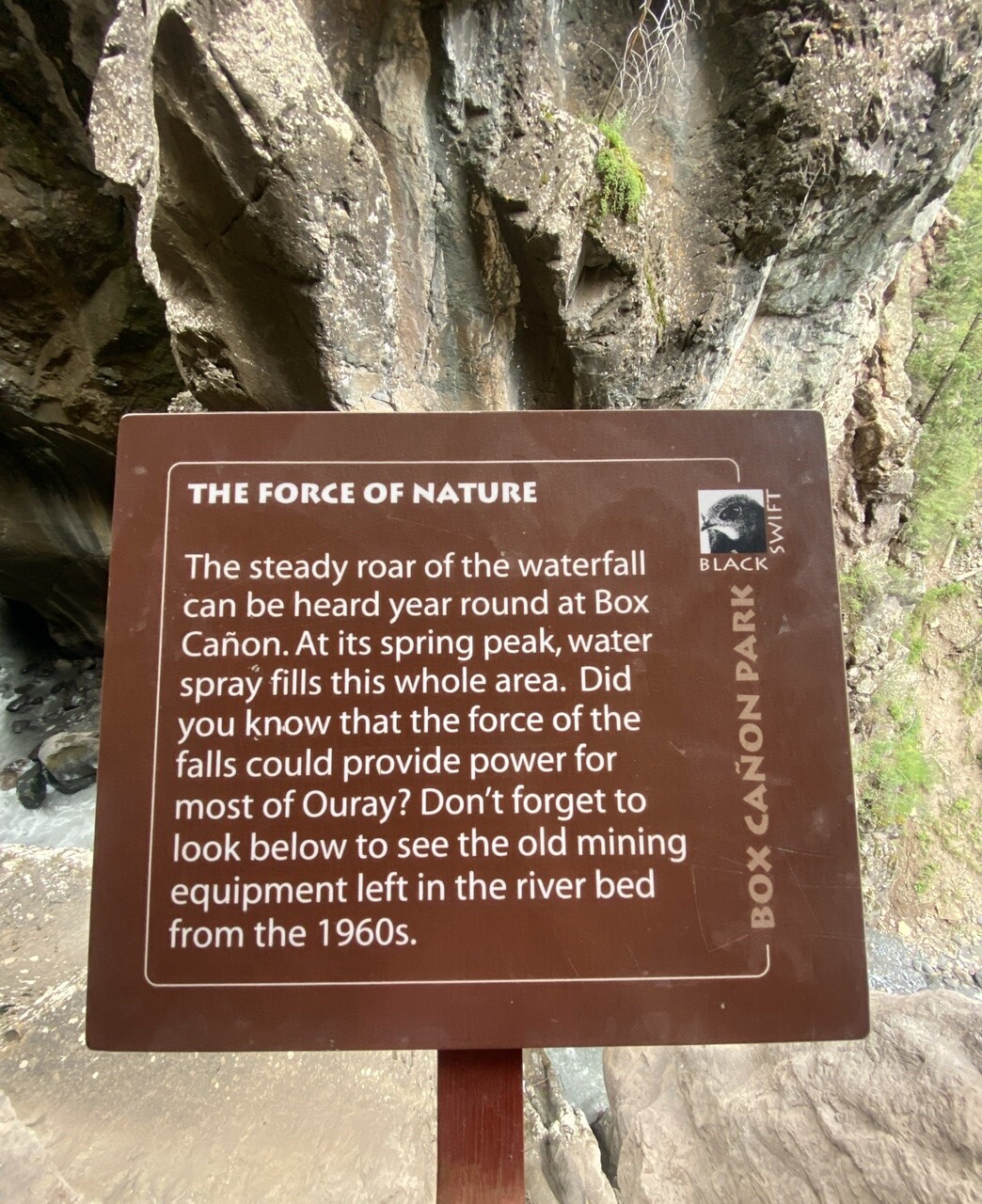 ** Incidentally, there is an almost identical box canyon and falls near Pagosa Springs, where we will visit, when we move to Durango, next month, because Pagosa Springs is really awesome, too! It was like dejavu for me, to be in Ouray’s Box Canyon, so I gotta show Mr Terrific.