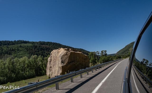 When the boulder fell onto Colorado Highway 145, just outside the town of Dolores, it also shook up tourism a little bit when they decided to build the road around the fallen boulder, instead of blowing it up.