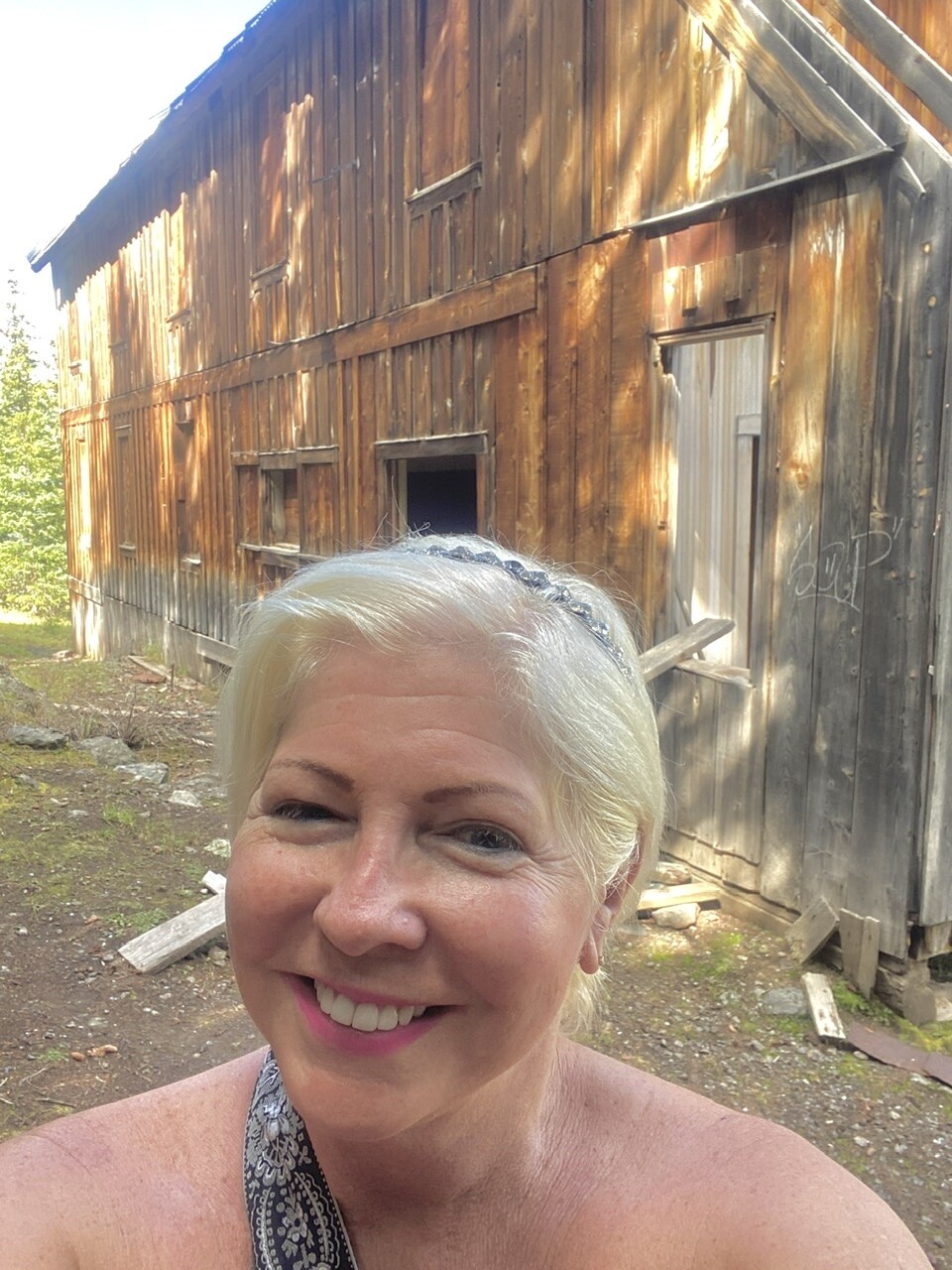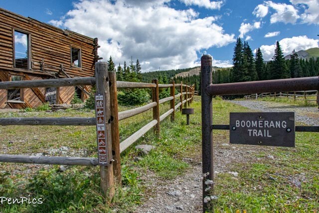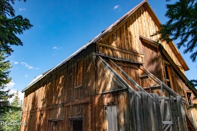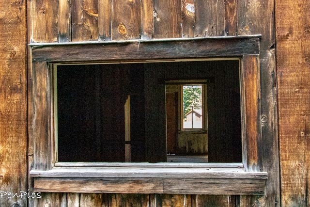 We finally found a place to park…just joking, as we were the only visitors. Next to us were wooden fences, marked with “no trespassing” signs. A bit confusing since there was a marked trail sign, too. Could we enter or not enter? Not one to ponder too long with this kind of quandary, I happily entered and gave myself a tour of the grounds. I did not enter either building though, as perhaps the no trespassing signs were meant for the structures themselves; to protect a roofless log building that had once served as a mine office and company store, as well as an impressive two-story boardinghouse.