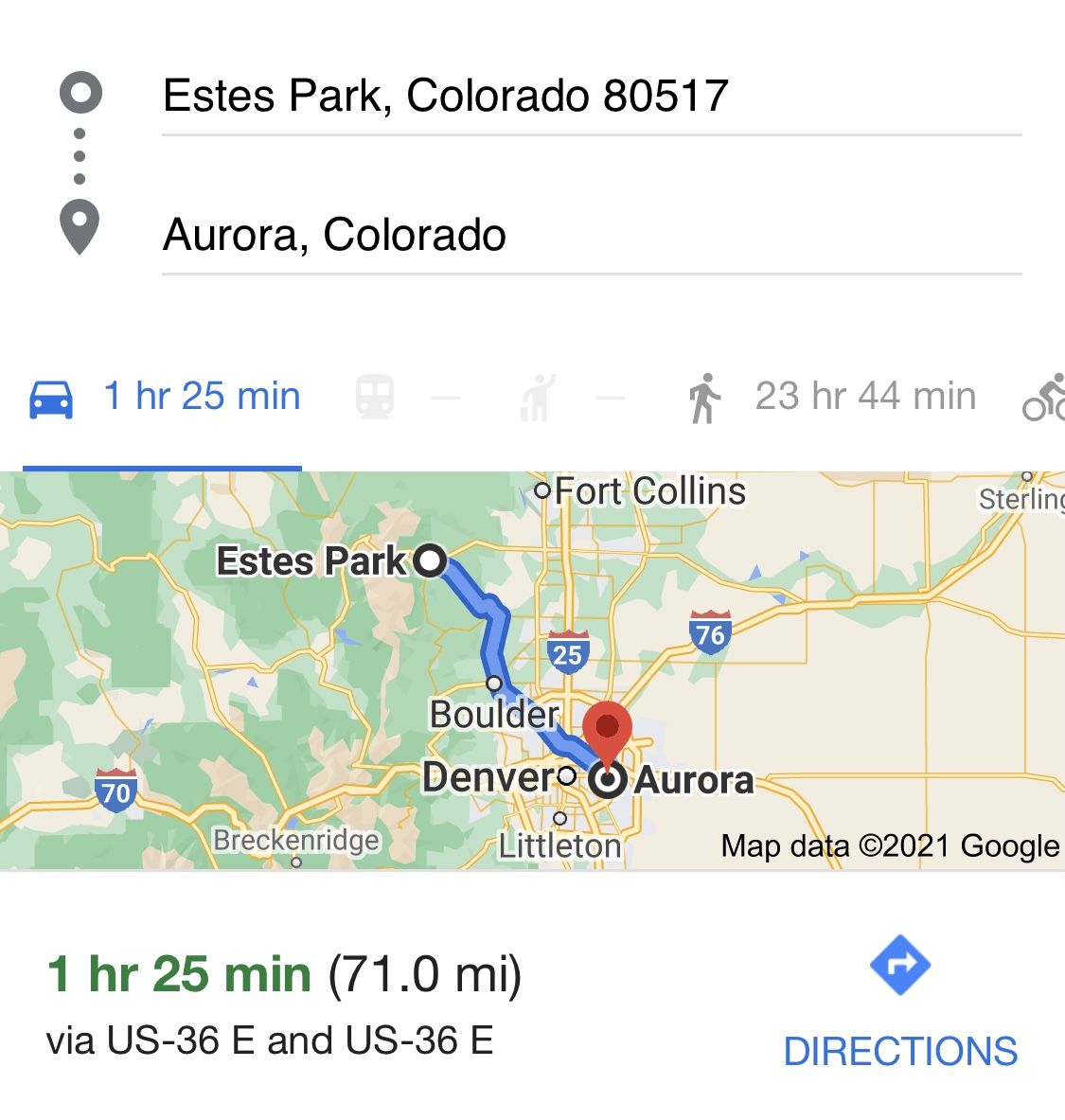 We left Aurora, after great conversation and food and wonderful hospitality, to head for Thornton, where we would meet another good friend of mine for lunch, then to visit his new horse, before we said goodbye and headed up to the Rocky Mountain Wilderness.