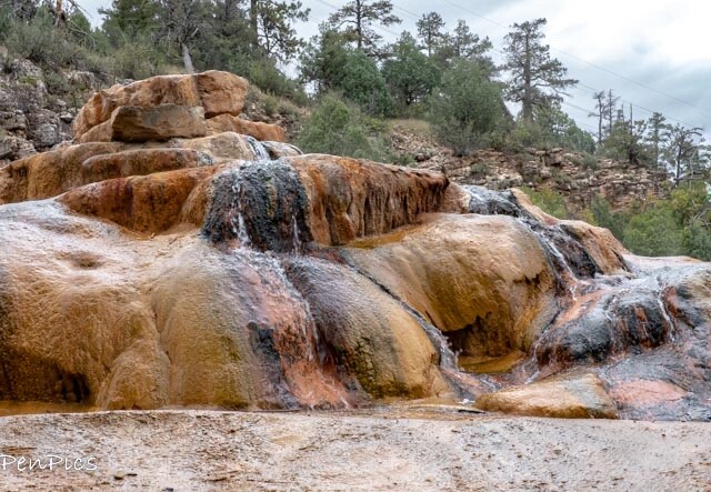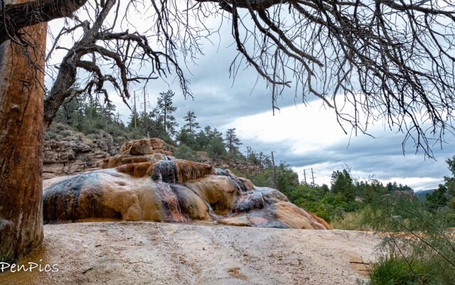 The Pinkerton Hot Springs are marked with a man-made rock pile that was created to be a safe place for the hot springs to discharge. These rocks have grown colorful over time, due to the water’s minerals. This water is a steamy 95 to 105 degrees Fahrenheit, so be careful when you touch it!