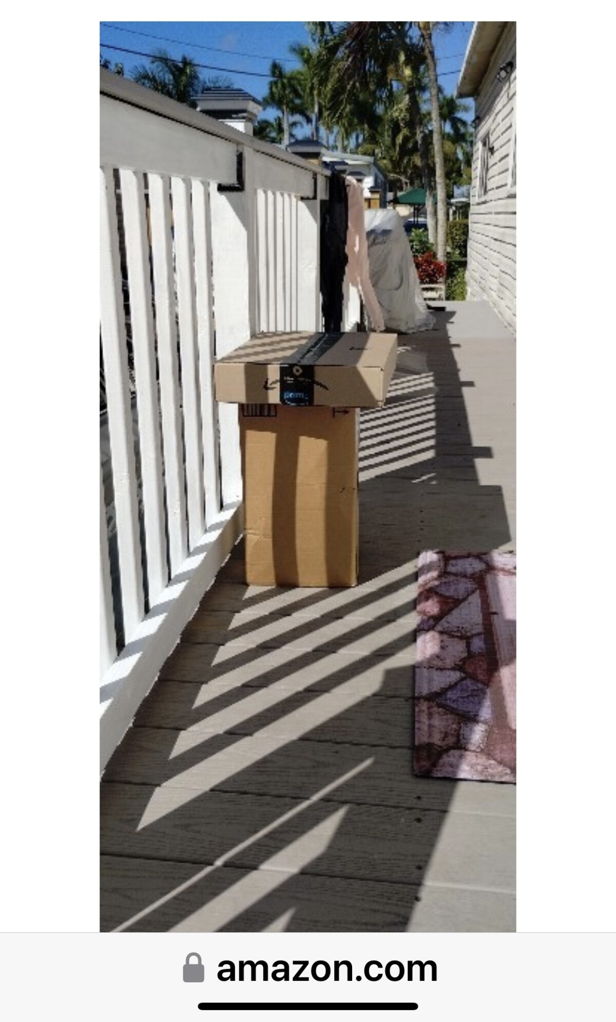There are 1,000 lots in this park, even if it got delivered in the right park, and the office personnel do not recognize the mobile home porch in the picture, so no clue which one got my mop and are enjoying the spendy Macadamian Nuts.